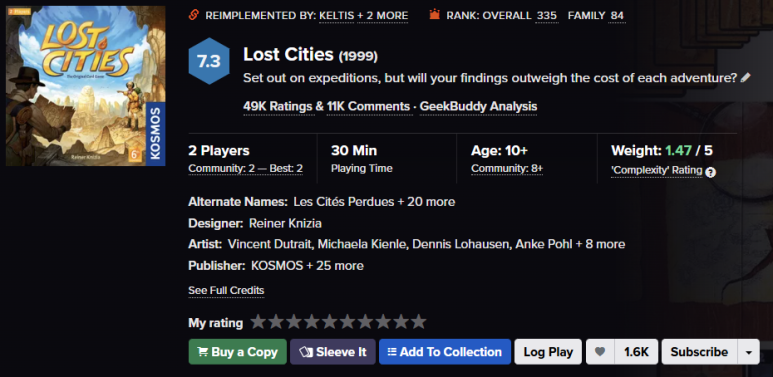 이번 게임도 말해 무엇할까요. 자이푸르와 함께 보드게임 카페에서 커플게임으로 많이 추천하는 로스트 시티입니다.
